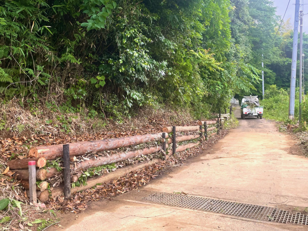 コンクリ舗装路に積もった土を掻き出し、山際の土の状態を確認すると、固く細粒化していました。