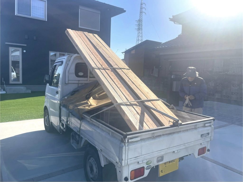一つは巨大ウッドデッキの材料に。